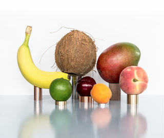 Homage to Fruit displays the simple beauty of fruit. Through significant raw materials and simple shape the display itself fades into the background giving stage to all varieties of fruit. As every fruit is differently shaped the placing confronts with the individuality of growth and consumption. The gesture of offering a single fruit evokes the desire of eating such. Fruit are not bound to a static fruitbowl but flexibly arrangeable and show up as objects
